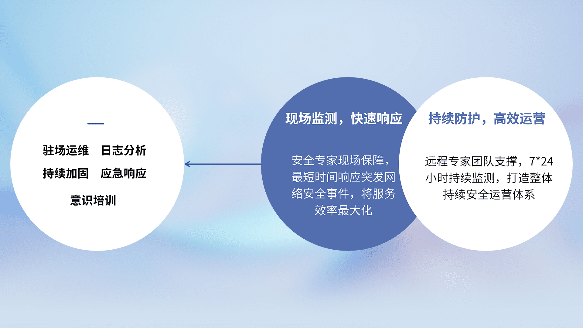 针对客户行业特性,,,,提供专属的一站式安全管理服务,,帮助客户全面感知网络空间威胁,,,通过安全专家的线上、、、线下防护支持,,实现风险闭环,,,,将安全保障常态化,,,,为客户打造常态化安全运维运营服务。。。